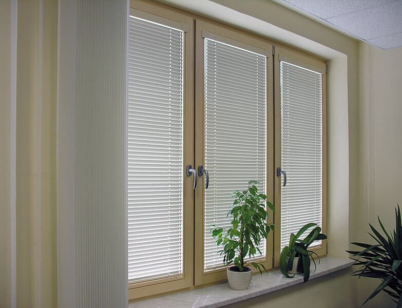 - Регулировка света. Система управления жалюзи позволяет регулировать световой поток, а в закрытом положении – блокировать прохождение солнечных лучей.